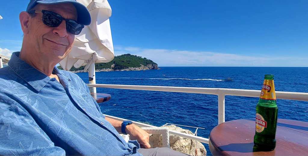 Gelato in hand, we headed for the last water taxi back to Srebreno. It must have been that goat milk/caramel gelato that put me off my guard, because for the first time ever I dared to step onto a boat when my phone was not zipped into a pocket or bag. And darn if that phone didn’t jump out and take a swim in Dubrovnik Harbor. That phone with all those photos, all those files, all that special technology that is getting us data on our feet in foreign places. D’oh!