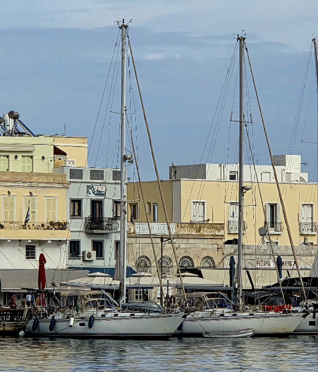 All that said, what are the odds that Hylas 49 hull #46 and Hull #47, literally created beside one another in 2004. would be docked side by side in Syros, Greece? Well, it happened.