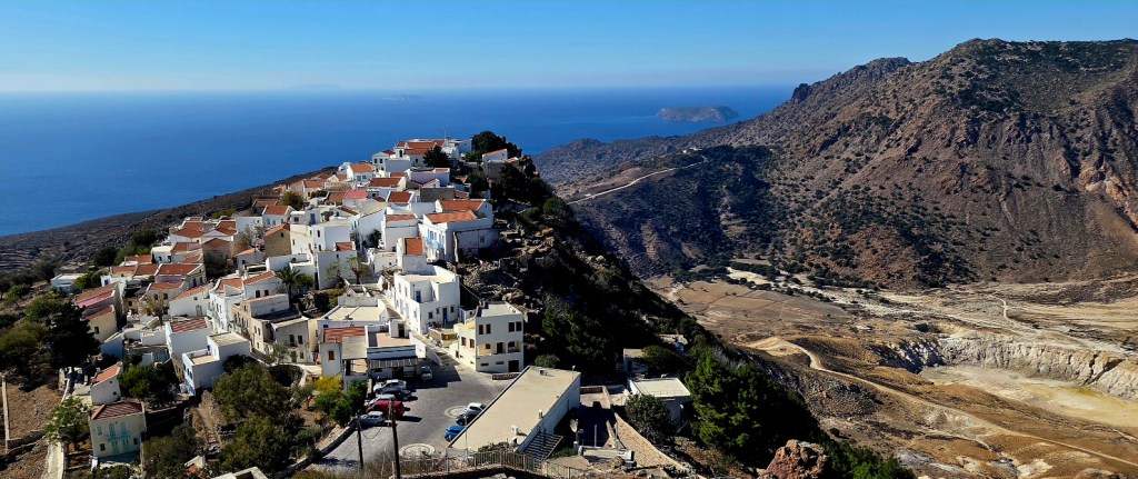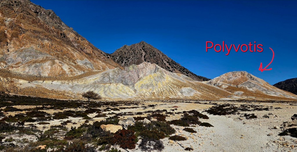 Now for the mythology of Nisyros: it seems that the island was created during the Giantomachy, or battle between the gods and giants. When Poseidon threw a piece of the island of Kos at the Giant Polyvotis. Polyvotis was crushed, and Nisyros was formed. Polyvotis is said to still be causing the earthquakes on the island, and one of the volcanic craters bears his name.