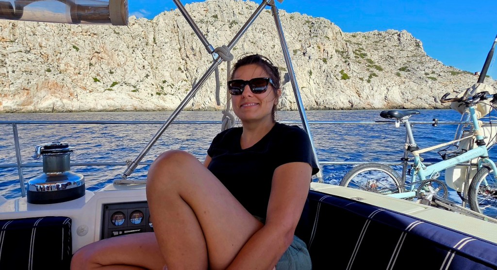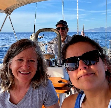 Sadly, we didn’t actually have many days of good wind during Sara’s stay, but we found other things to do: explore Greek towns, swim and snorkel in little bays, eat pastries and tzadziki, bake with phyllo dough, traipse around a volcano, expand our Greek and Yiddish vocabulary, play epic games of Skip-Bo and Farkle, and laugh until our stomachs ached. We kept in touch with the Iris crew and warned them that we may have spoiled Sara as a racer, as she clearly resonated with the cruising vibe. We miss you, Sara!