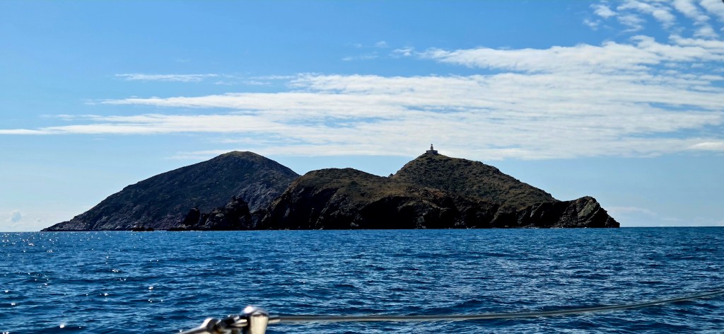 Now and again we will come across a bitty little island like this one, and on that bitty little island will be a stout and venerable lighthouse steadfastly keeping seafarers safe. Which begs many questions: How often does a human have to service that outpost, and how do they get up there? (There is no dock, no beach, no landing at the island.) How long has it been since that lighthouse required a keeper? Who was that keeper? a hopeless romantic, with an oil lamp and a raft of books? an outcast seeking relief from society? a father and mother with four semi-feral children and a few goats? a writer in need of headspace? What do you think?